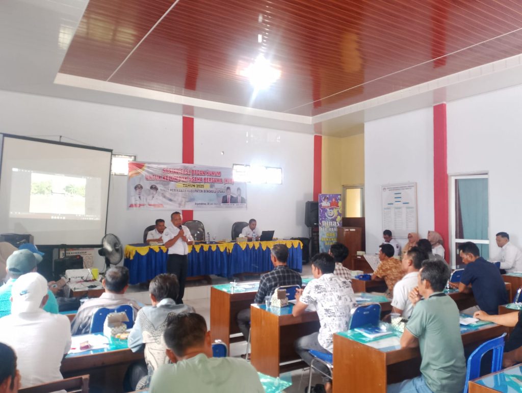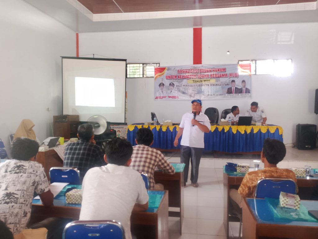 DISKANews, Arga Makmur 30 Juli 2025 – Dinas Perikanan Kabupaten Bengkulu Utara melalui Bidang Pemberdayaan Nelayan Kecil menggelar kegiatan Sosialisasi Badan Hukum bagi Kelompok Usaha Bersama (KUB) Tahun 2025 yang berlangsung di Aula Dinas Perikanan kabupaten Bengkulu Utara.